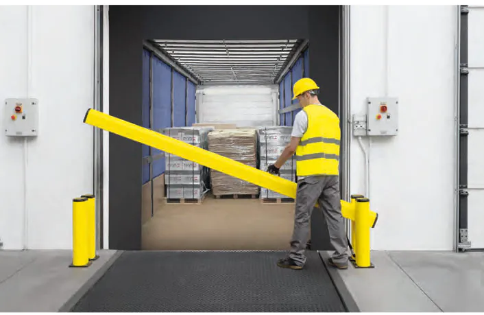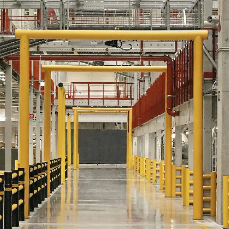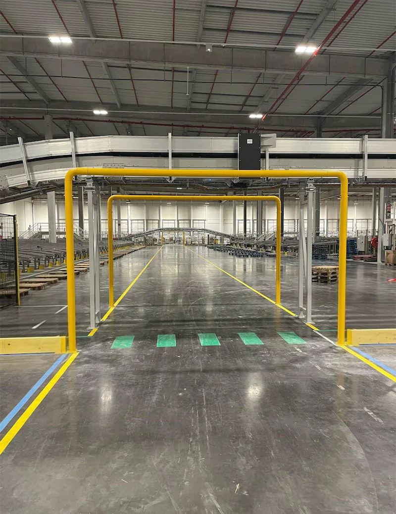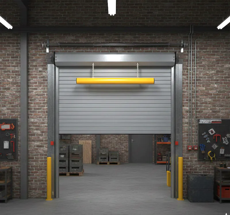 Les zones de passage sont critiques. Nos solutions sécurisent non seulement vos portes de quai et coupe-feu, mais protègent aussi vos convoyeurs et réseaux de tuyauterie contre les dommages accidentels.