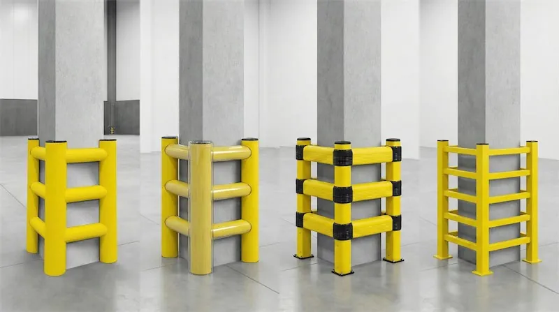 Protection polymère pour colonnes : conception modulaire, plusieurs hauteurs ; modèles possibles sans gêner la circulation en zone de passage.