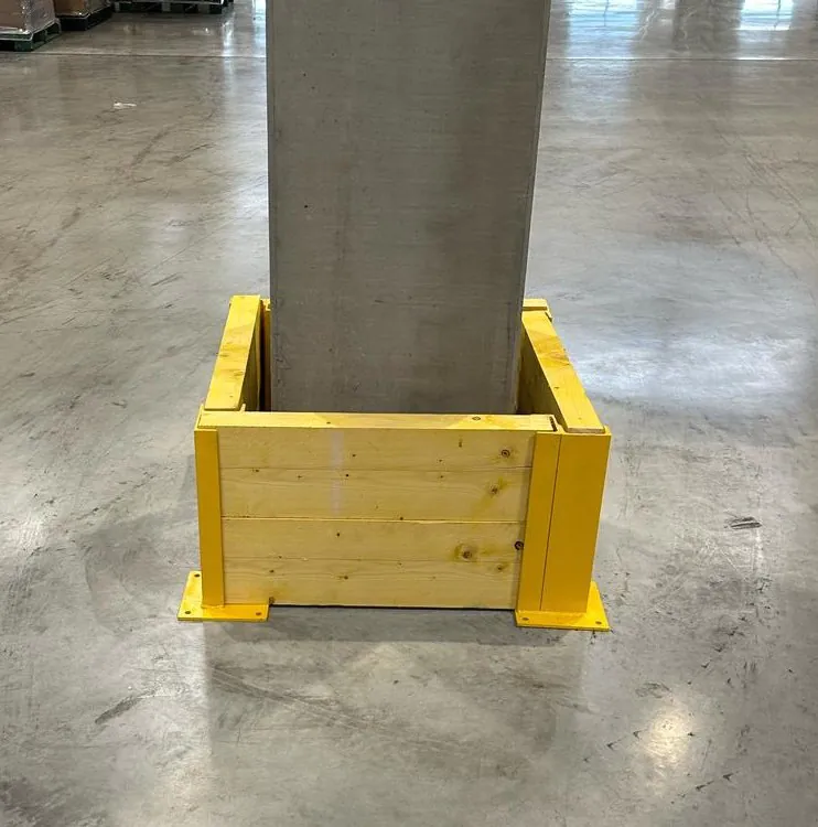 les poteaux / colonnes de structure (béton / acier) en entrepôt, avec protections polymères modulaires,