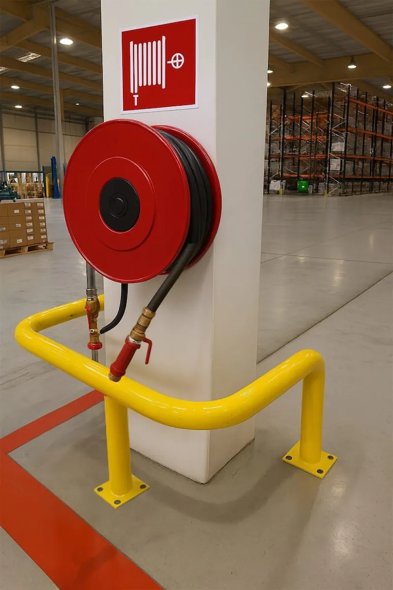les RIA (Robinet d’Incendie Armé), avec des protections rouges dédiées pour sécuriser vos équipements incendie sans gêner l’accès.