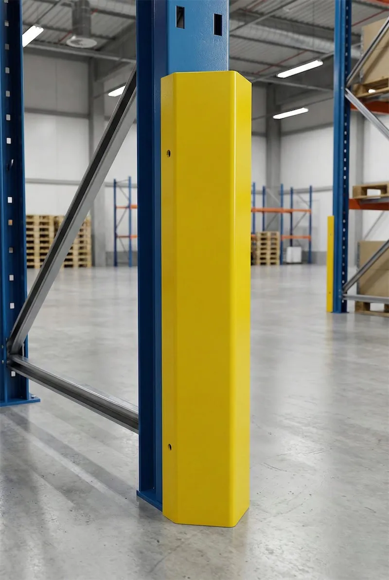 Selon les recommandations de la norme NF EN 15635, il est fortement conseillé de protéger les montants de rayonnage aux endroits exposés (zones de circulation, angles, points d’impact).